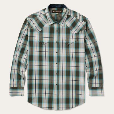 Stetson Men’s Brushed Flannel Western Shirt | Green
