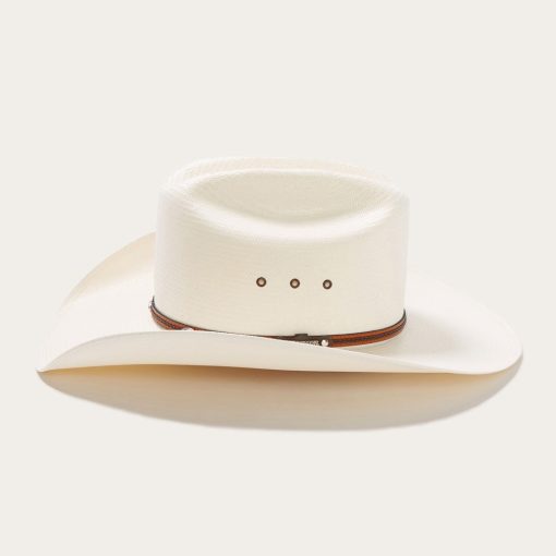 Handmade in the U.S.A. from high-quality shantung, the Alamo 8X Straw Cowboy Hat has a 4” brim and a regular oval 4 ⅛” cattleman crown with eyelets for increased circulation and breathability. Its rugged Western style is enhanced by a two-tone leather hat band with oval-shaped silver-tone conchos. An absorbent DRI-LEX® sweatband ensures an all-day, comfortable fit.