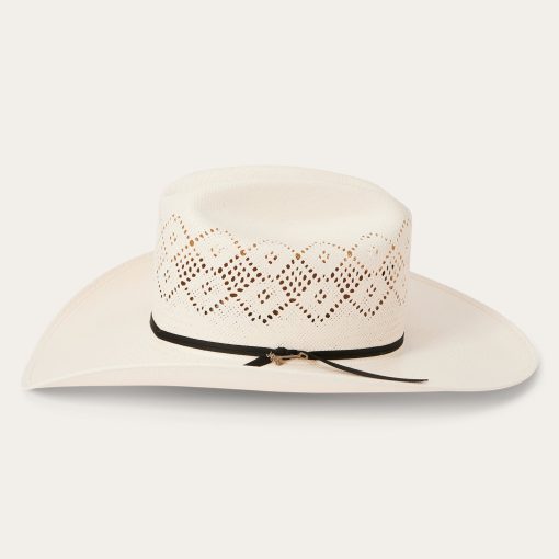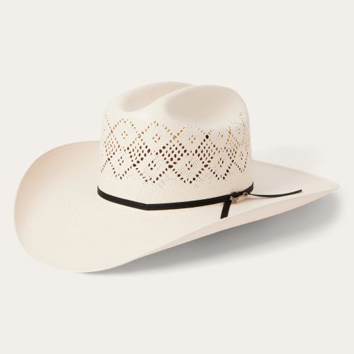 Handmade in the U.S.A., the Brookwood 10X Straw Cowboy Hat has a 4 1/4” brim and a 4 1/8” diamond vented cattleman crown for superior circulation and breathability. The crown is finished with a simple grosgrain hat band and branding iron hat pin bearing the initials “JBS”, a nod to our founder, John B. Stetson, whose pioneering legacy lives on in every hat we sell. A genuine leather sweatband ensures a secure fit and all-day comfort.
