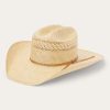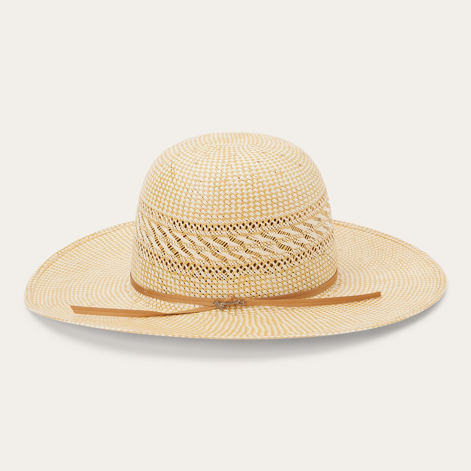 Handmade in the U.S.A. from high-quality shantung, the Classic 20X Straw Cowboy Hat has a 4 1/4” brim and a 4 1/8” vented cattleman crown for superior circulation and breathability. The crown is finished with a simple grosgrain hat band and branding iron hat pin bearing the initials “JBS”, a nod to our founder, John B. Stetson, whose pioneering legacy lives on in every hat we sell. A genuine leather sweatband ensures a secure fit and all-day comfort.
