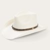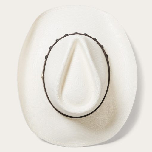 Handwoven one strand at a time in the U.S.A. from 10X quality shantung straw, the Cyprus combines our legendary craftsmanship with a versatile western profile and a rugged studded leather hatband. It has a 4 ⅛” regular oval pinch front crown, 3 1/2” medium curved brim and features an absorbent DRI-LEX® sweatband for a cool, comfortable fit.