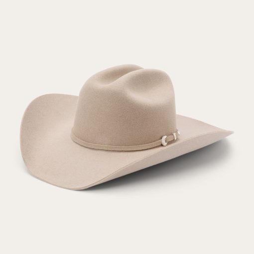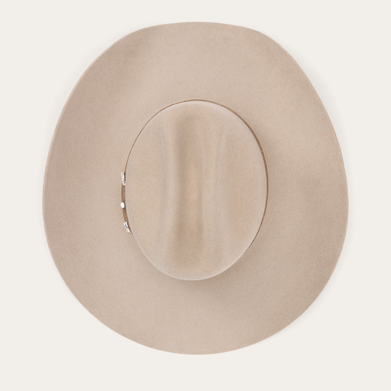 The Duncan 4X is handmade in the U.S.A. of durable, weather-resistant 4X quality buffalo felt, which has a unique, pleasingly coarse texture. Fit for long days on the range, it features a 4 ¼” brim and a 4 ¼” cattleman crown finished with a matching self-felt band and three-piece silver-tone buckle set. A genuine leather sweatband, and full satin liner provide a secure and comfortable fit. Includes an original Stetson hat box.