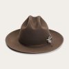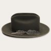 The 1865 Distressed Open Road Royal Deluxe features a genuine leather sweatband and a 4 ¼” crown outfitted with a grosgrain hat band, an eye-catching feather detail and a hat pin honors Stetson’s Western heritage—and a nod to the pioneering spirit that lives on in every hat we sell.