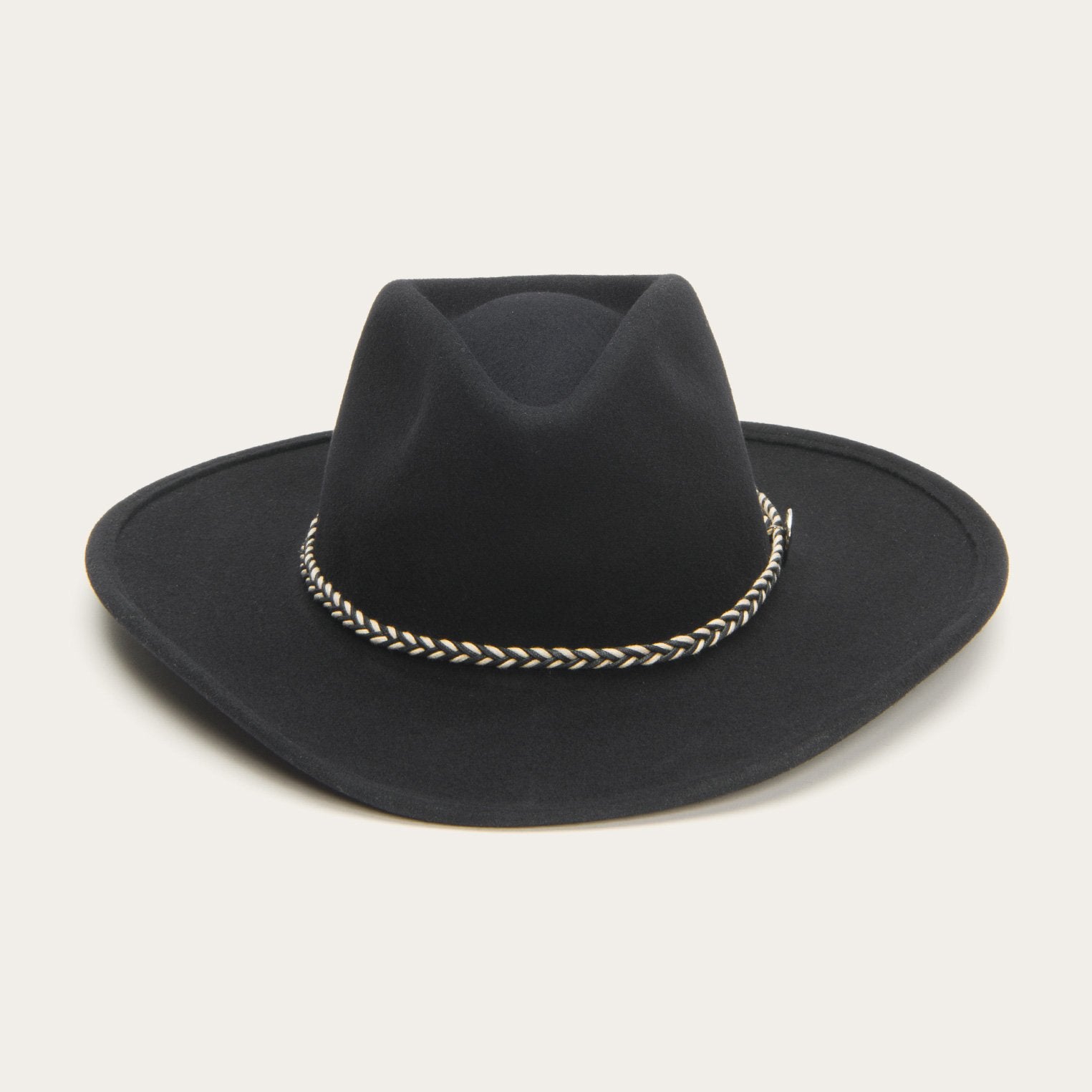A member of Stetson’s Buffalo Collection — western hats handmade with the finest all-natural buffalo fibers, the Rawhide boasts 3X buffalo fur for durability and water-repellence for long days on the range. Finished with a pinch front crown, interior leather sweatband and a braided hat band accented with a buffalo nickel concho. The Rawhide is crushable and features a wire brim for easy shaping.