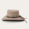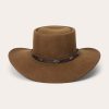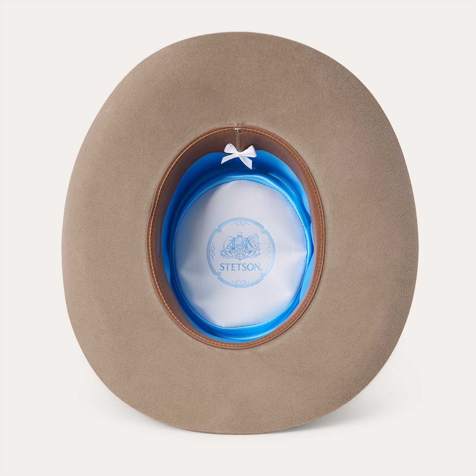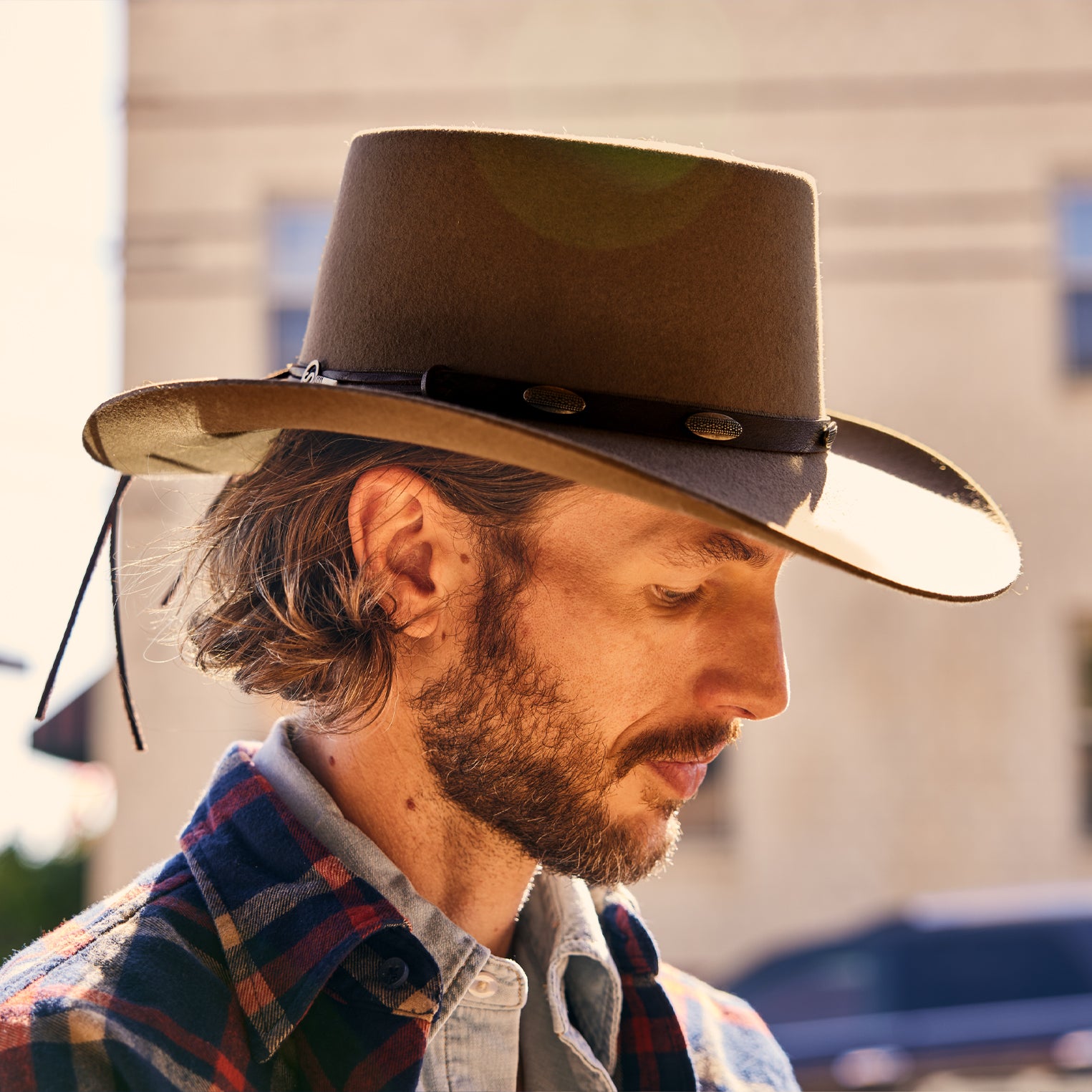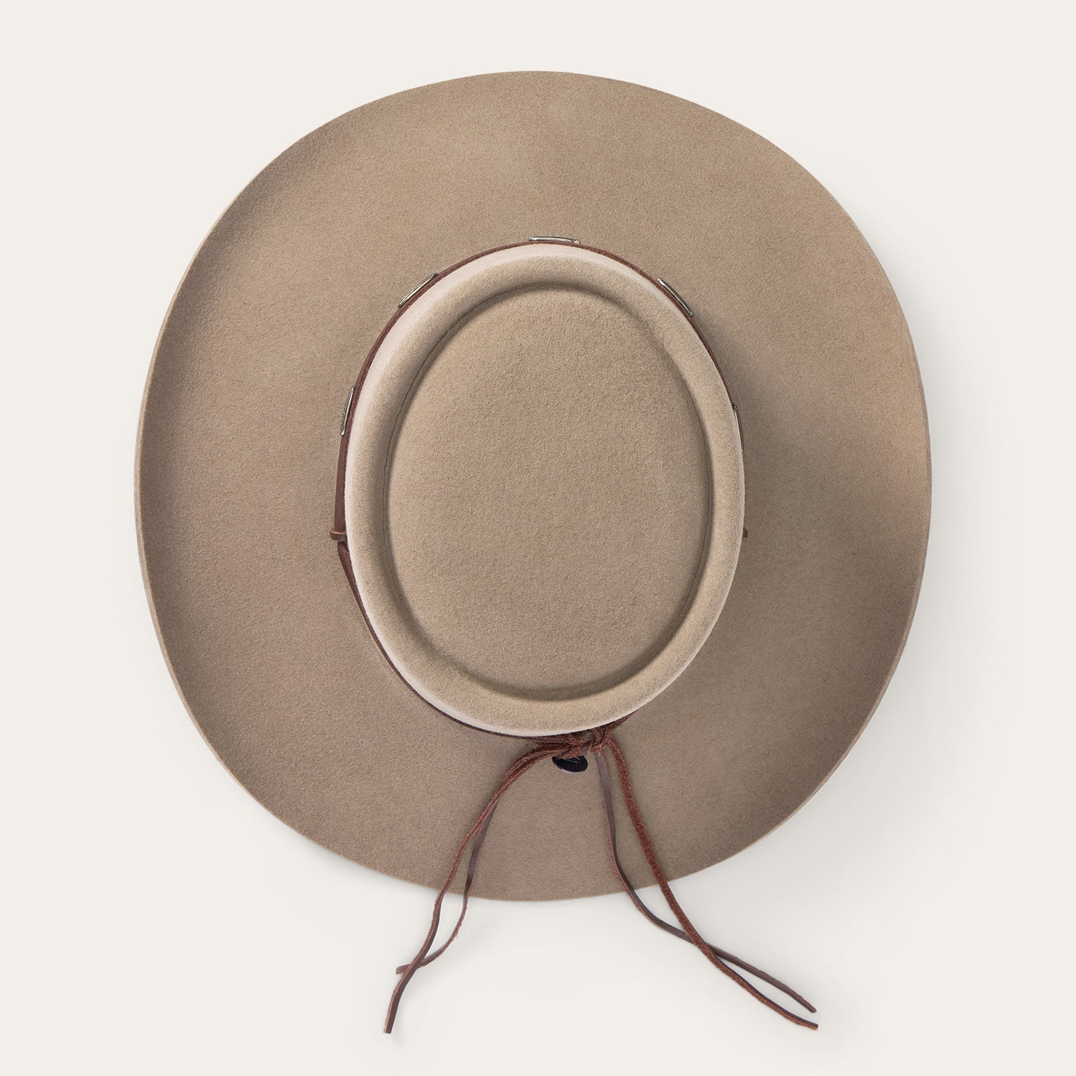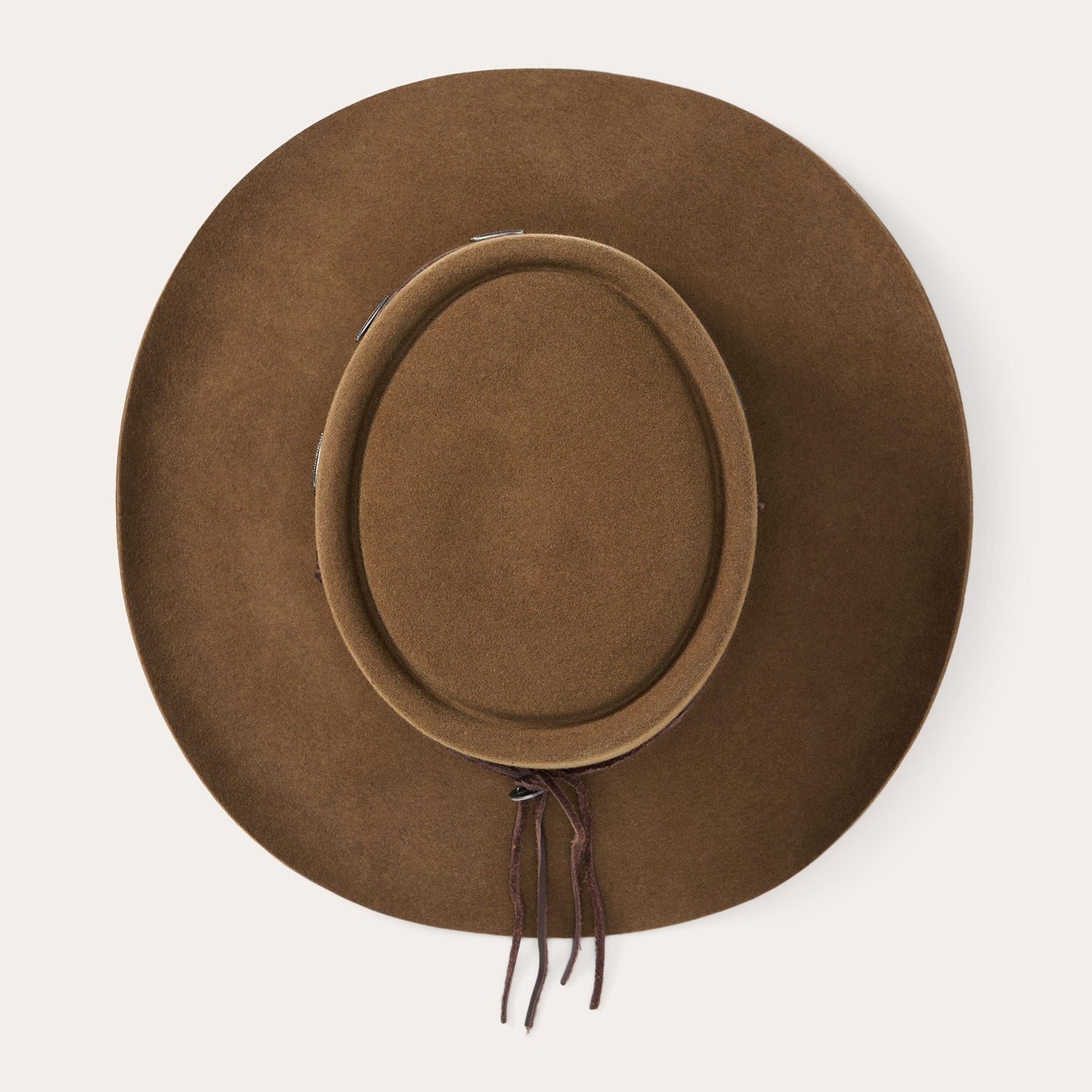 This western-inspired fashion hat brings a welcome pop of Cowboy Core to any look. Its bold silhouette features a statement-making 3 1/2″ telescope crown, 3 1/2” downturn brim and leather hat band with silver-tone conchos. Handmade in the U.S.A. with a firm finish from high-quality wool felt, it’s finished with a faux leather sweatband and satin liner for a comfortable, all-day fit.
