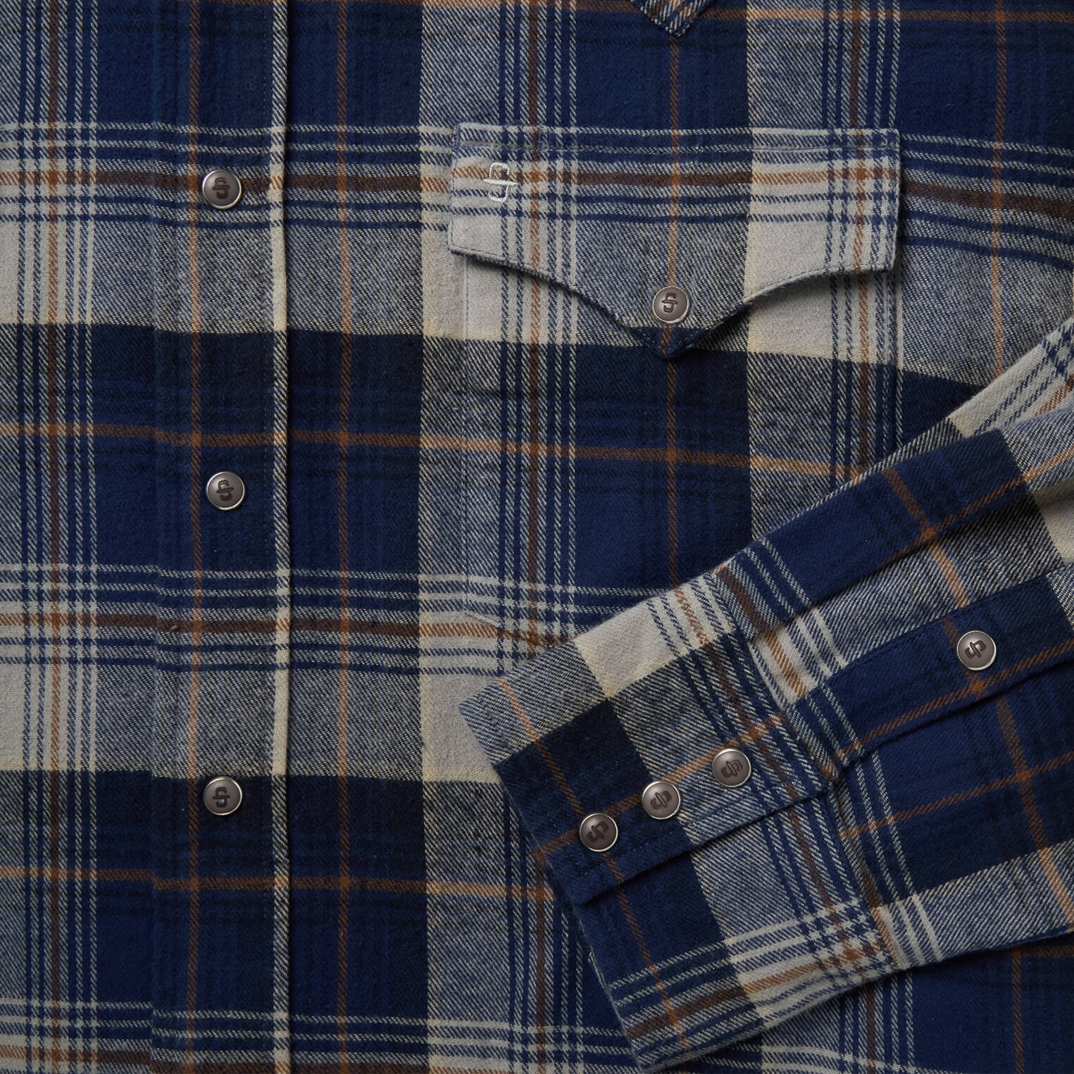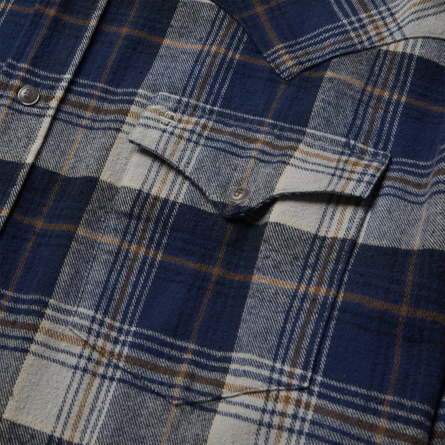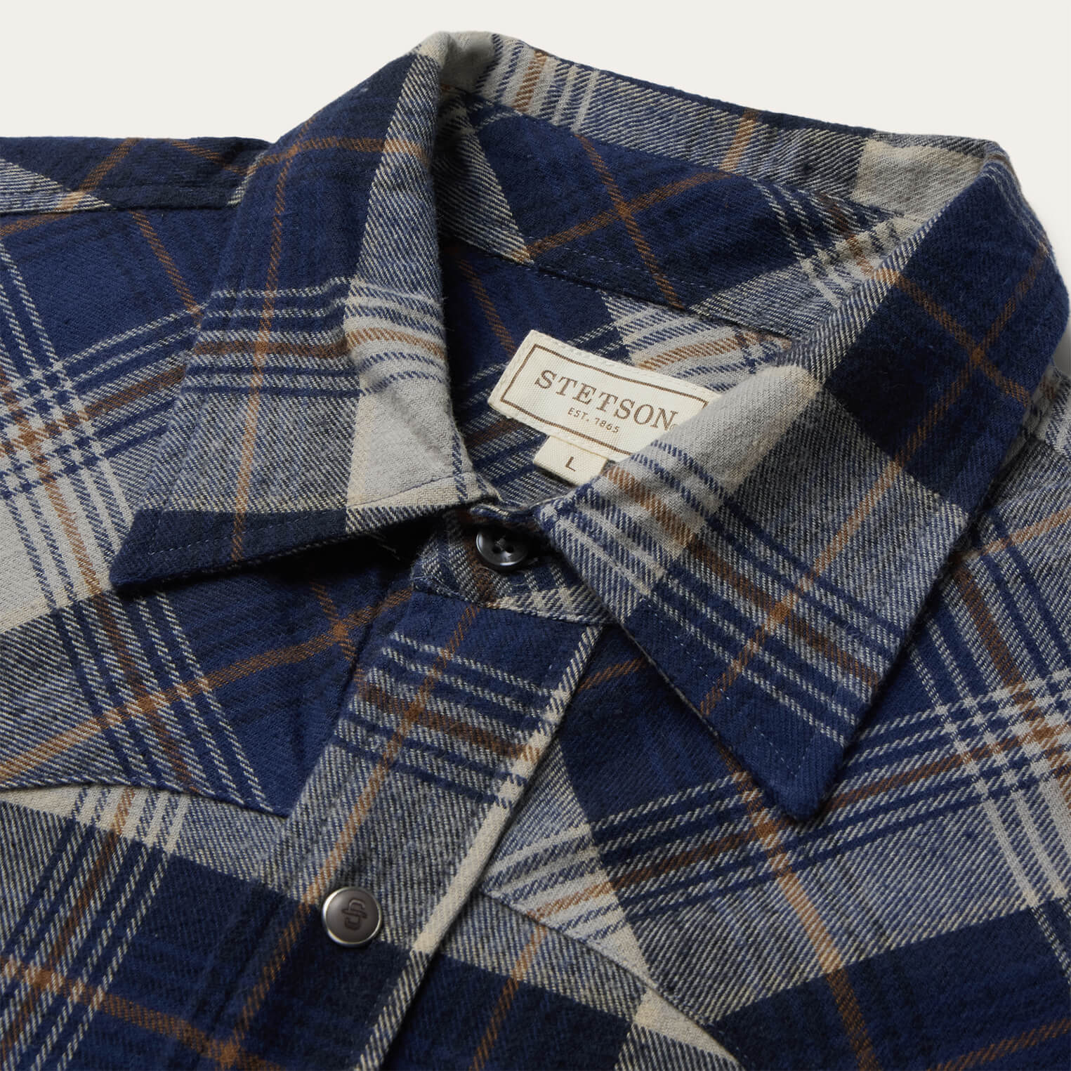 This flannel western shirt is crafted from high-quality brushed cotton twill that’s been garment washed for a soft feel that will only improve over time. Its authentic details include a single-point curved back yoke, a spread collar with collar stays, subtle Stetson embroidery on the chest and right cuff placket, a classic snap front and three-snap cuffs. Cut in our original fit for a traditional silhouette that allows for freedom of movement.