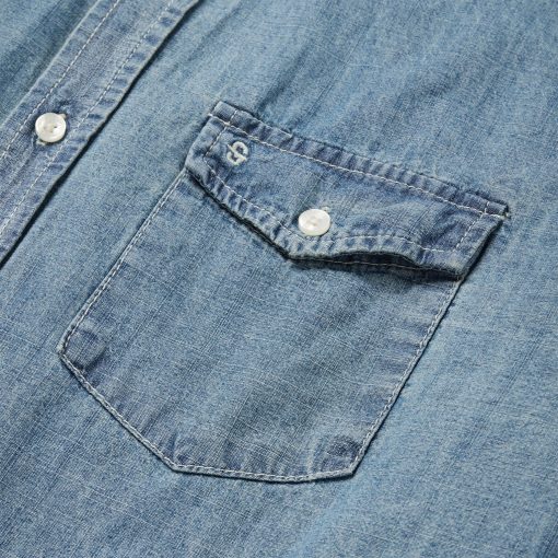 This rugged, western-inspired shirt is crafted from high-quality 100% cotton chambray that’s been garment washed for a soft, broken-in feel that will only get better with time. It has a full button front, button-down collar, no front yokes, a straight back yoke with center seam, pleat and a self-fabric locker loop. Cut in our Tailored Fit, a versatile style that’s slightly tapered at the sides for a streamlined appearance and a shorter length designed to look great tucked or untucked.