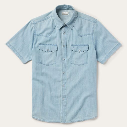 This short-sleeve western shirt is crafted from high-quality 100% cotton chambray oxford that has an extra-soft feel that will only get better with time. It has one point shallow front and back yokes, a spread collar and a classic snap front with pearl logo snaps. It’s cut in our Tailored Fit, a versatile style that’s slightly tapered at the sides for a streamlined appearance and a shorter length designed to look great tucked or untucked.