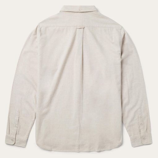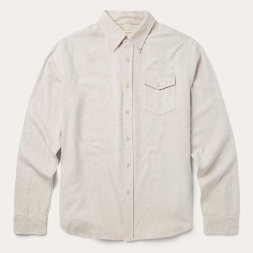 This heathered flannel button-down shirt is crafted from high-quality 100% cotton that has a soft feel that will only improve with time. It has a shallow straight back yoke with center seam, back pleat and locker loop, a single-point pocket with flap, a button-down collar, subtle Stetson embroidery on the chest and right cuff placket, a button front and one-button cuffs. Cut in our Tailored Fit, a versatile style that’s slightly tapered at the sides for a streamlined appearance and a shorter length designed to look great tucked or untucked.