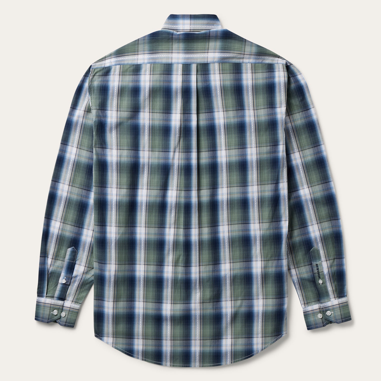This button-up shirt is crafted from a yarn dyed Lucky Diamond plaid with dobby stitch. It features a straight back yoke with pleat, Stetson “S” logo embossed on the front left pocket, and “STETSON” embossed on the right sleeve placket. It has a contrast inside trim and a two-button adjustable mitered edge cuff. The classic button front is finished with pearl logo buttons and it is crafted with 100% cotton for quality and breathability. The feel of this shirt will only get better with age.