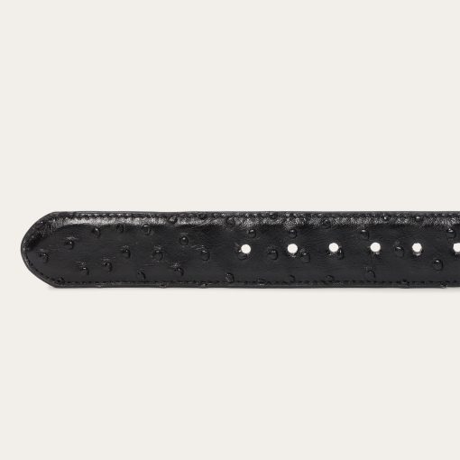 Crafted from genuine Ostrich leather, this belt has a 1 ¼” wide black cowboy classic Ostrich leather strap with western tabs. It features seven holes on the point end to ensure a proper fit for all body types and is finished with a two-tone Stetson buckle. Combining timeless western style with statement-making luxury materials, each of our exotic belts embodies our legendary commitment to quality and attention to detail.