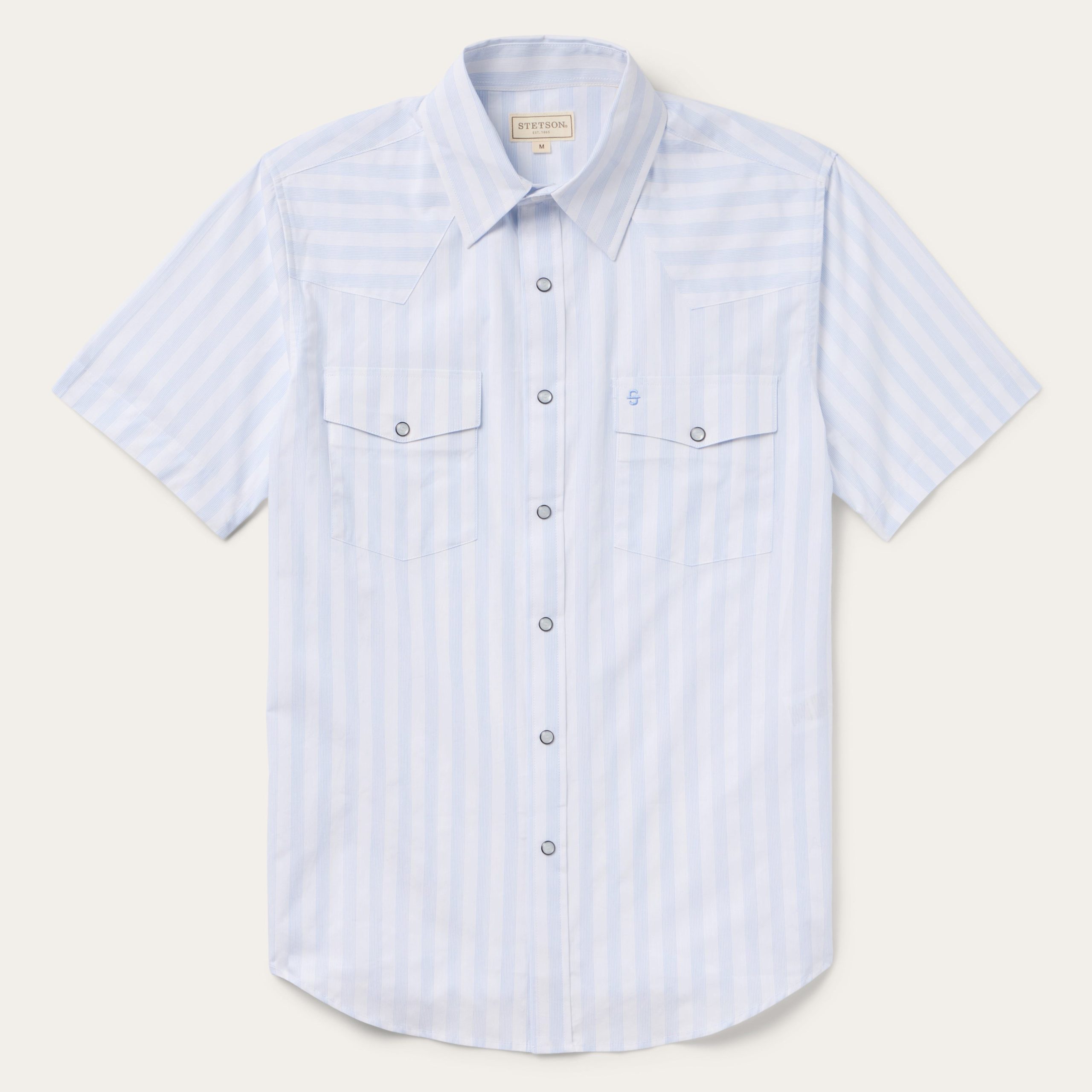 This short-sleeve western shirt is crafted from high-quality 100% cotton oxford that has an extra-soft feel that will only get better with time. It has one point shallow front and back yokes, a spread collar and a classic snap front with pearl logo snaps. It’s cut in our Tailored Fit, a versatile style that’s slightly tapered at the sides for a streamlined appearance and a shorter length designed to look great tucked or untucked.