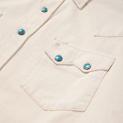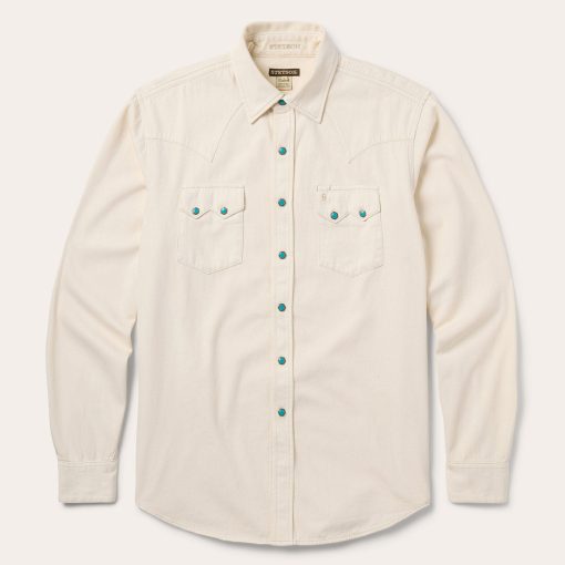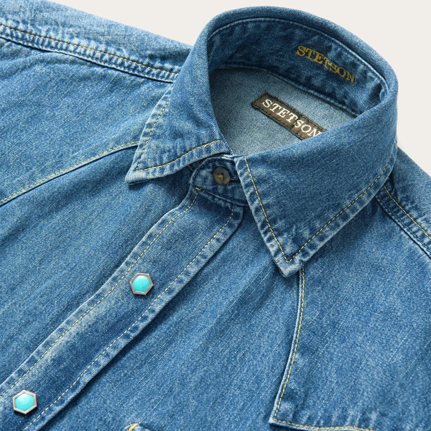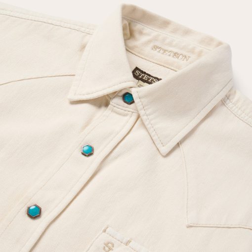 Stetson Men’s Turquoise Snap Western Denim Shirt | Cream