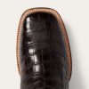 A square toe exotic that combines a working cowboy silhouette with luxury materials, the Aces Alligator Boot features a burnished brown alligator vamp and 11” waxy brown leather shaft. It has a wide square toe—a popular working style that provides maximum all-day comfort—and leather walking heel. Its quality construction includes 3/4 welt leather soles with brass nails, premium leather lining and a removable Tru-X insole that ensures comfort and support in every step.
