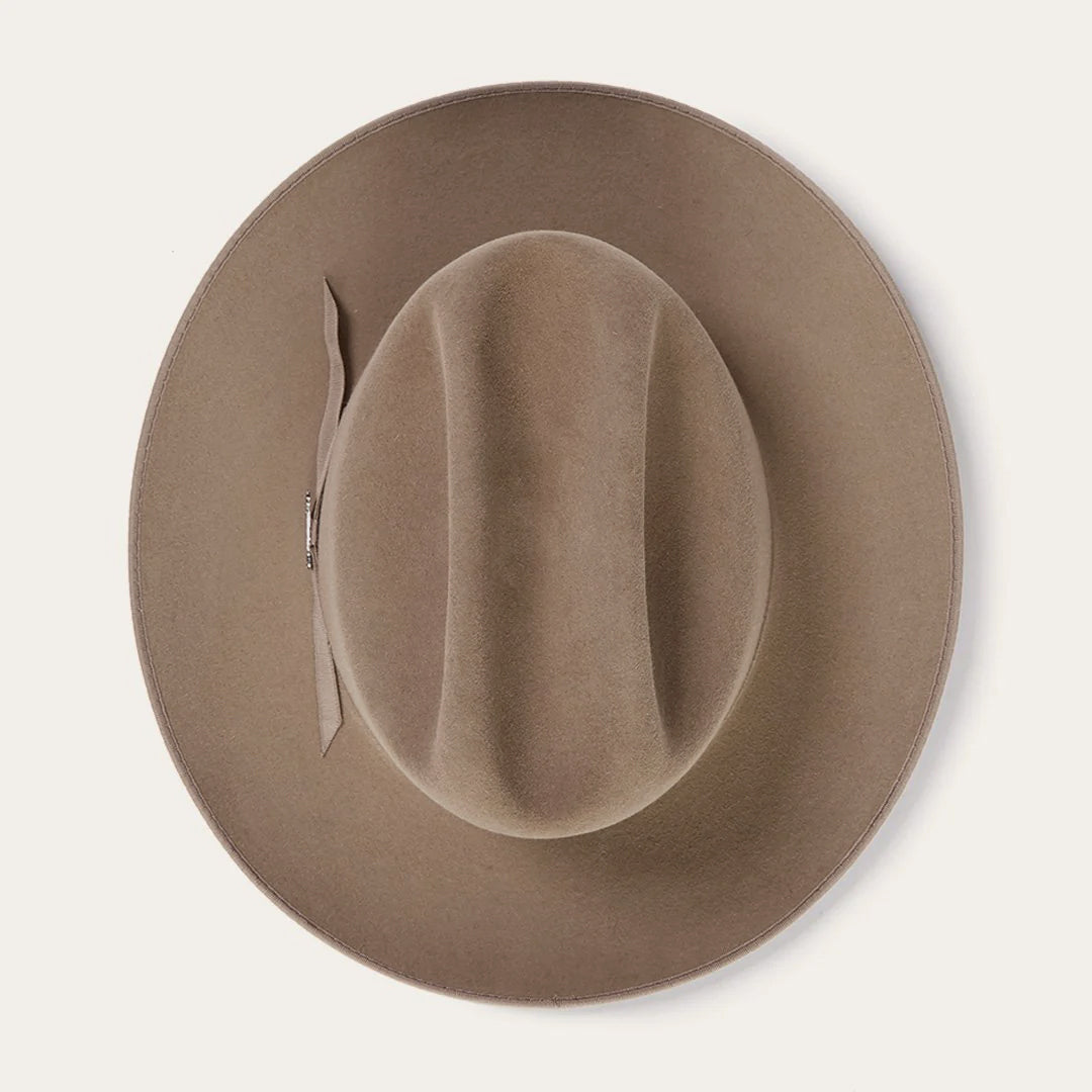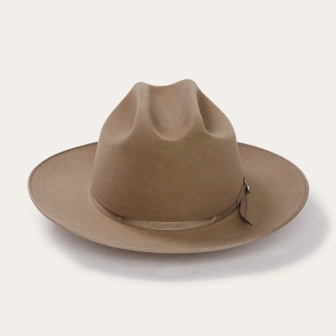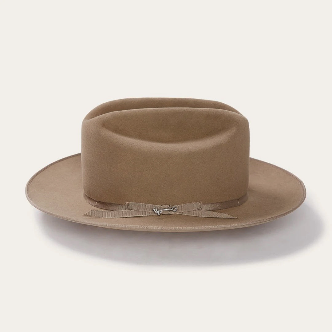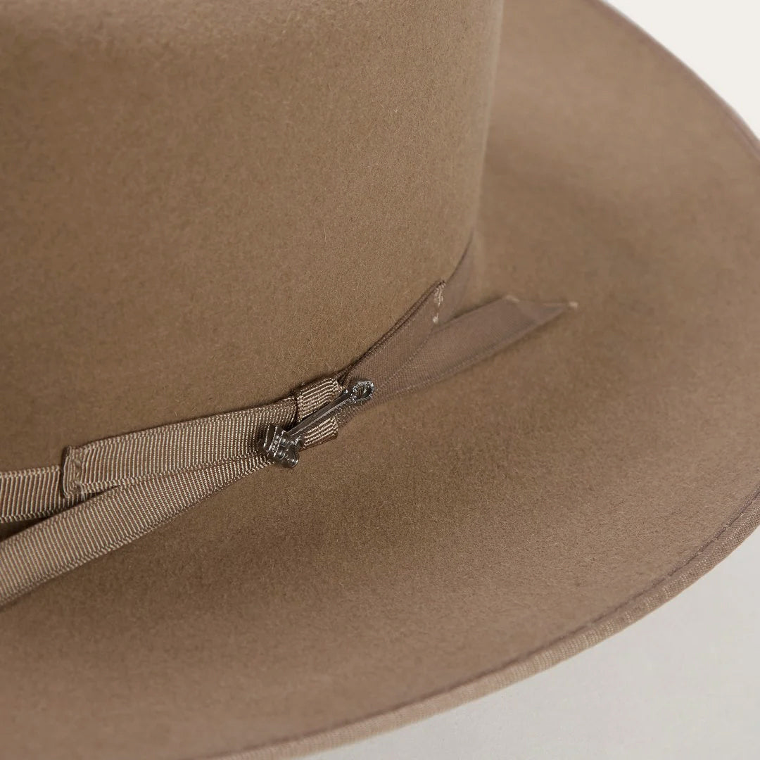 The Open Road 6X features a genuine leather sweatband and a 4 ¼” crown outfitted with a grosgrain hat band and branding-iron hat pin bearing the initials “JBS”, a nod to our founder, John B. Stetson, whose pioneering legacy lives on in every hat we sell.