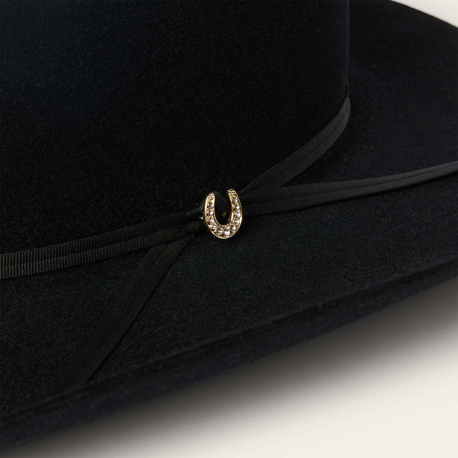 The Regal is handmade in the U.S.A. from our proprietary 6X quality fur felt, which is prized for its durability and elegant feel, and comes with a custom stamped co-branded leather sweatband and keepsake Stetson x Ricky Regal hat box.