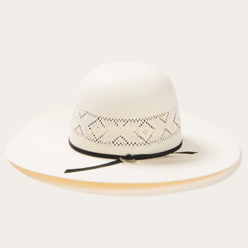 Handmade in the U.S.A. from high-quality shantung, the Saddleman 20X Straw Cowboy Hat has a 4 ¼” flat brim and a regular oval 5 ¾” open crown which is vented for increased circulation and breathability. It’s finished with a grosgrain band and JBS branding iron pin—a nod to our founder, John B. Stetson, whose legacy lives in on in everything we make—as well as an absorbent DRI-LEX® sweatband which ensures an all-day, comfortable fit.