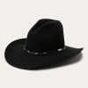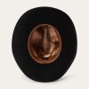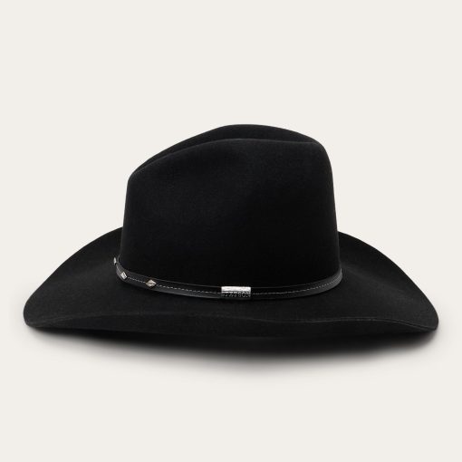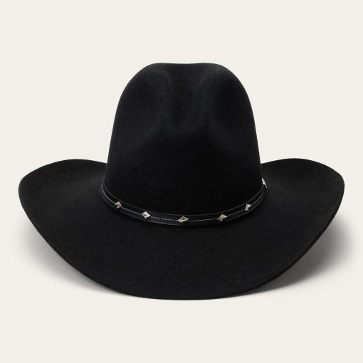 Part of our American Buffalo Collection, the Silver Mine is crafted from rugged, durable 4X quality buffalo felt which has a unique, pleasingly coarse texture. Its frontier-ready profile features a sloped 4”x5” pinch front Gus crown and a 3 3/4” brim. A leather hat band with silver-tone, diamond-shaped concho accents adds understated Western style, while a genuine leather sweatband and full satin liner provides a secure fit and premium comfort. Ships in an original STETSON hat box.