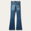 These 921 High Rise Flare jeans are crafted from a durable cotton denim with just enough stretch for comfort and ease of movement. The classic 5-pocket style is augmented by unique Western yoke designs on both the front and rear of the jean. Sitting at the waist, they have a slim fit through the thigh and knee and flare out to a dramatic leg opening. Additional details include plain back pockets, Stetson branded buttons, rivets, and zipper. Gentle sanding and whisker details give the dark blue rinse a lived-in look.