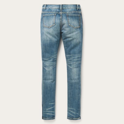 Details include subtle back pockets, side stripe detailing, whiskers, and a lightly hand-sanded fade for the perfect worn-in feel. The complete look is finished off with custom Stetson-branded hardware. Designed to look great, fit right, and work hard, the careful styling of these Western jeans is made for women with an independent spirit and love of heritage craftsmanship.
