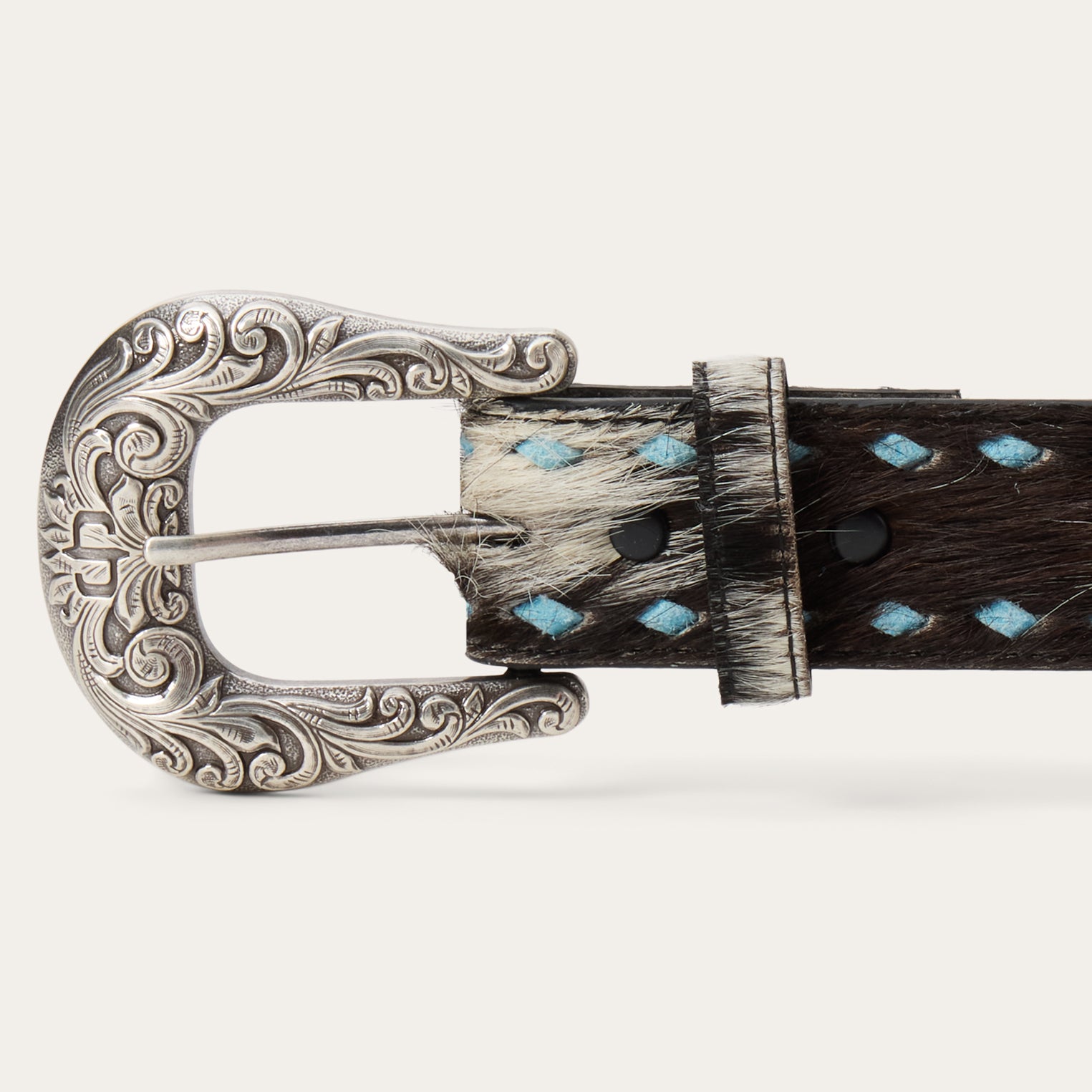 Made from top grain leather, this belt has a 1 ⅜” hair-on-hide strap with laced edge detail. It features five holes on the point end to ensure a proper fit for all body types and is finished with an engraved silver-tone Stetson buckle. Our belts embody our legendary commitment to quality and make the perfect complement to your favorite hat and boots.