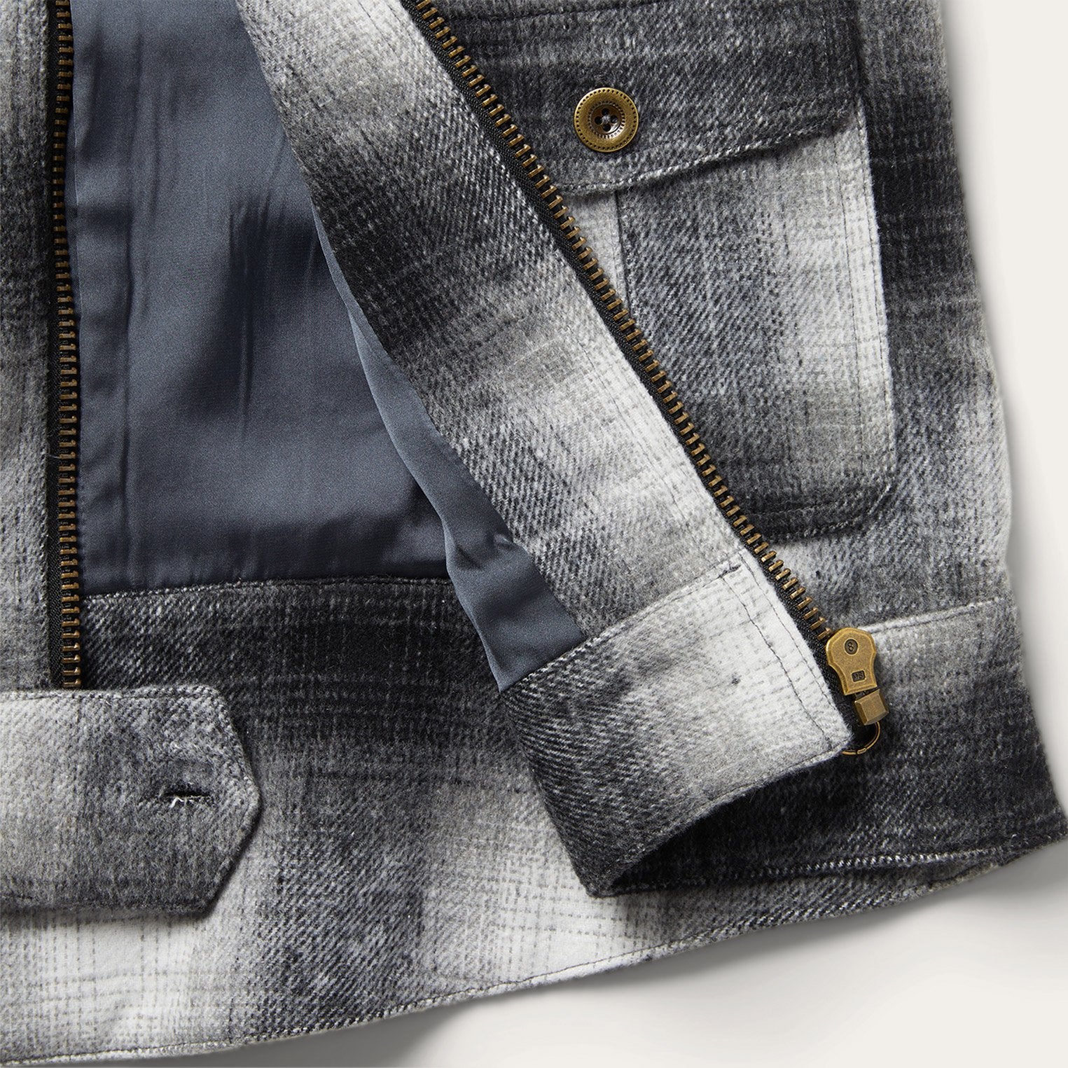 Layer up in this ombre plaid blanket coat. Made with a warm woolen blend and featuring a detachable faux fur collar for extra comfort this zip-front jacket fits just right with a single point back yoke and princess seams.