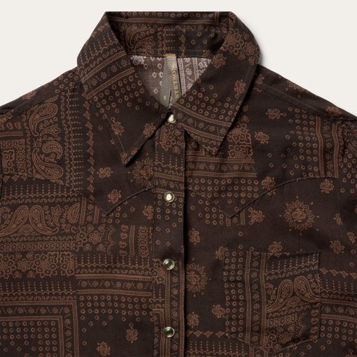 This women’s long-sleeve Western-style shirt is crafted from soft, smooth 100% rayon and features our eye-catching all-over Bandana patchwork print. Authentic style features include a full snap front, single point deep curved front and back yokes, along with a single point left chest patch pocket. Lightweight and breathable, it has an easy, elegant fit that allows for freedom of movement.