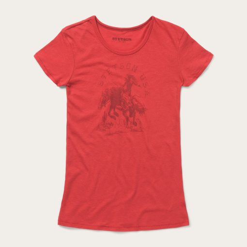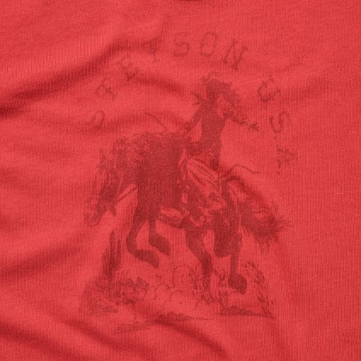Nothing says good times like the relaxed feel of a graphic tee. Designed for maximum comfort without sacrificing an ounce of style, our t-shirts are made from airy cotton and screen-printed with custom signature graphics. This Western Stetson tee has been gently distressed, providing the perfect worn-in look for the spirited cowgirl. Go casual with a pair of jeans and boots, or dress things up with a skirt and sandals — however you decide to wear it, this shirt will see you through your day and then some. Extra soft and cut with the perfect slim fit, it’s an instant classic.