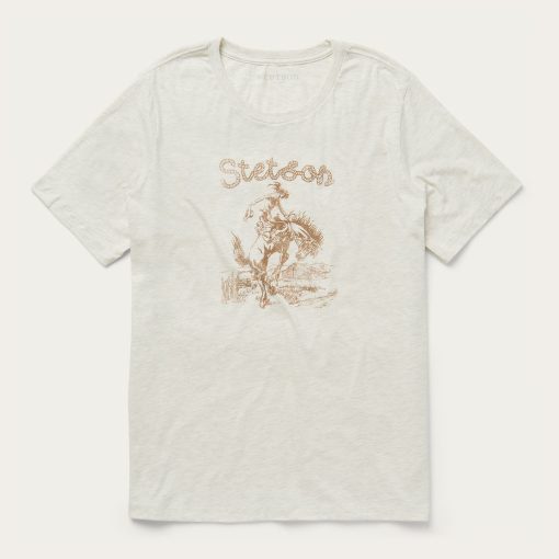Nothing says good times like the relaxed feel of a graphic tee. Designed for maximum comfort without sacrificing an ounce of style, our t-shirts are made from airy cotton and screen-printed with custom signature graphics. This Western Stetson tee has been gently distressed, providing the perfect worn-in look for the spirited cowgirl. Go casual with a pair of jeans and boots, or dress things up with a skirt and sandals — however you decide to wear it, this shirt will see you through your day and then some. Extra soft and cut with the perfect slim fit, it’s an instant classic.