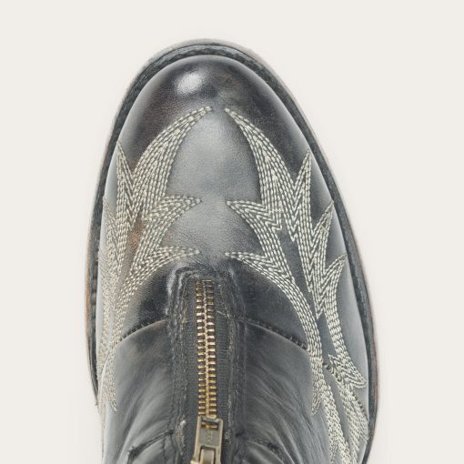 - Leather Vamp and Shaft With Front Zipper